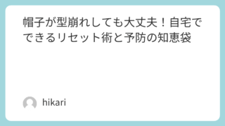 お気に入りの帽子、ふとした瞬間に「なんだか形が変わっちゃった…?」なんて経験はありませんか?バッグに入れたり、うっかり踏んでしまったり…日常の中で気づかないうちに、帽子は少しずつ型崩れしてしまうことがあります。でも大丈夫。実はおうちでできる...