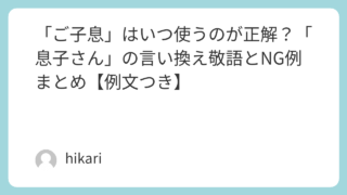 敬語って、丁寧にしているつもりなのに「それ、逆に失礼かも」と不安になることがあります。とくに相手のお子さんの呼び方は迷いやすく、「息子さん」「息子様」「ご子息」など、どれが正解なのか分からなくなりがちです。しかも、丁寧にしようとして言葉を重...