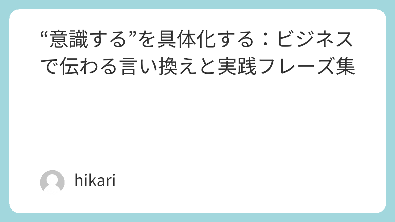 同じ内容を伝える場合でも、言葉の選び方ひとつで相手に与える印象は大きく変わります。「意識する」だけでは抽象的でニュアンスが伝わりにくい場面もあります。