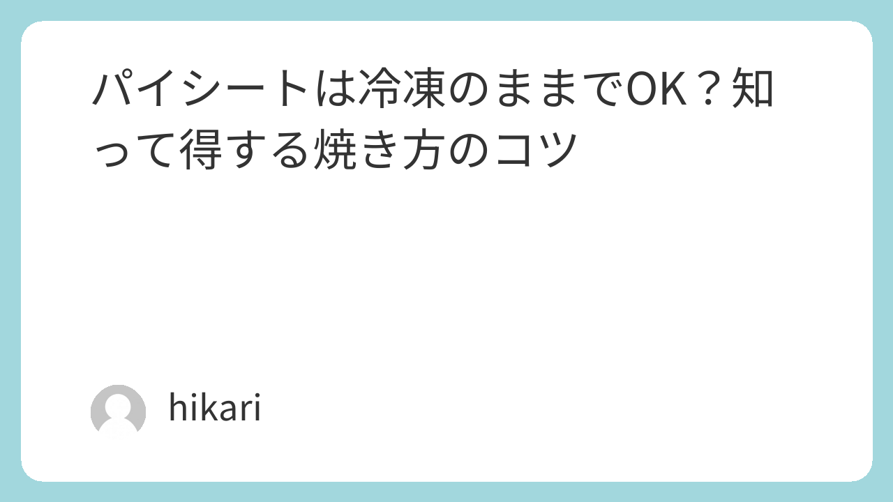 パイを作ろうと思ったとき、「冷凍パイシートって解凍しないでそのまま焼けるの?」と疑問に思ったことはありませんか?