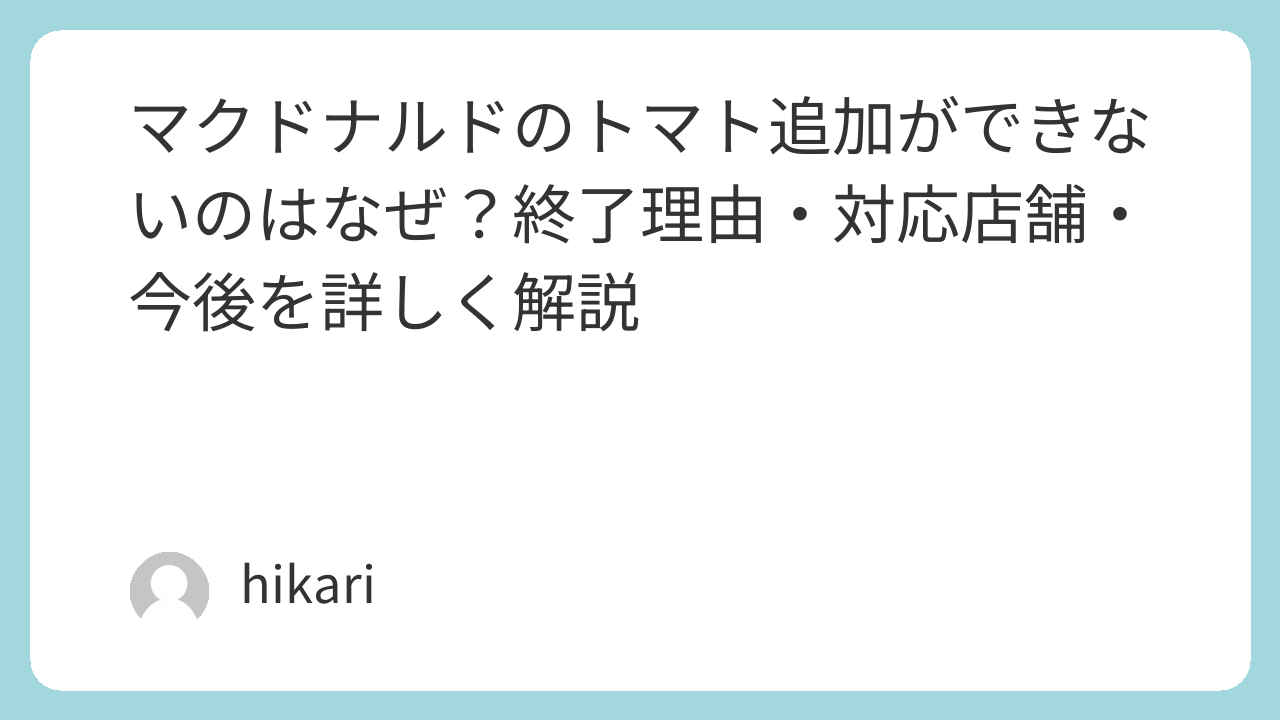 今回は、マクドナルドの「トマトトッピング終了」の話題について、