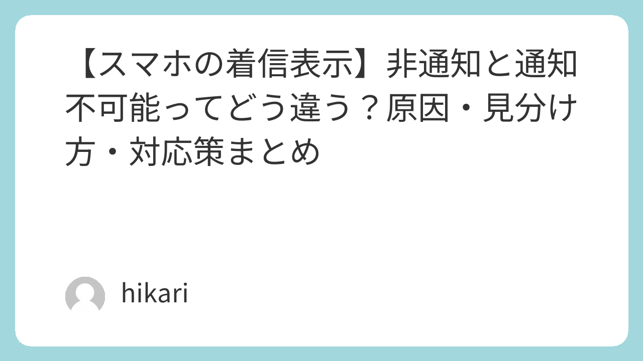 この記事では、「非通知」と「通知不可能」の違いや意味、表示される原因、着信時の対処法について、スマホ初心者の方でもわかりやすいように丁寧に解説します。