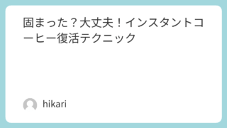 生活 固まった?大丈夫!インスタントコーヒー復活テクニック 朝の一杯として欠かせないインスタントコーヒー。いざ飲もうとしたら「あれ?カチカチに固まってる……」と驚いた経験はありませんか?せっかく買ったのに捨てるのはもったいないし、無理にほぐしても粉が飛び散ってしまうことも。特に湿気の多い季節や、開封... 生活豆知識
