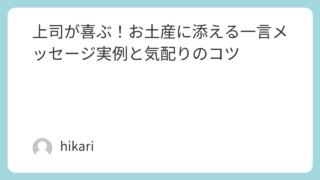 生活 上司が喜ぶ!お土産に添える一言メッセージ実例と気配りのコツ 上司へのお土産に、ちょっとした一言メッセージを添えたことはありますか?ただ渡すだけではなく、気の利いたメッセージを添えることで、あなたの印象は大きく変わります。「どんな言葉が適切なのか」「丁寧すぎても堅苦しいのでは?」「逆に砕けすぎても失礼... 生活